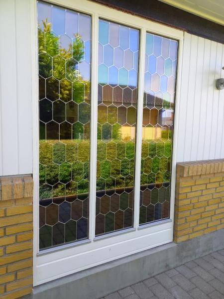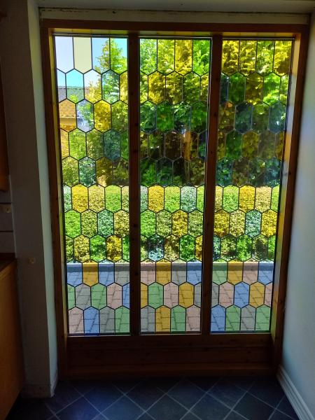 3 stk. farvede blyindfattede termoruder. H 184cm B 43,5cm Læs mere.