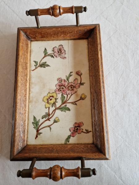 Antik Porcelænsbakke med trækant og håndtag.