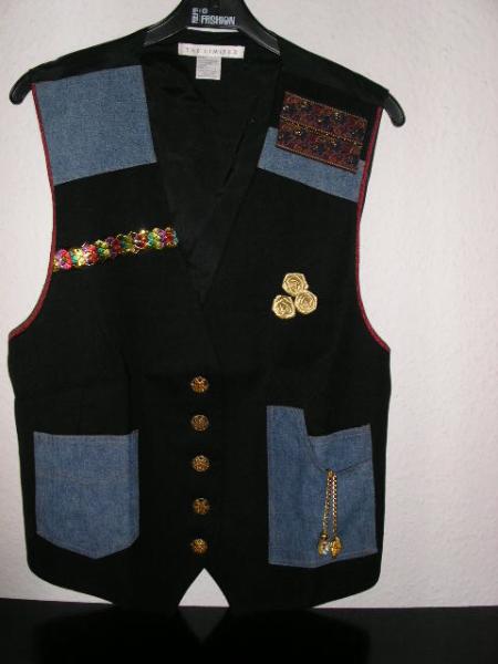 Flot ny Damevest ubrugt med mange detaljer Str. One Size . Sort bundfarve med mange fine detaljer. Ryggen er ens sort. Foret er sort. Lommepynt kan vippes ind.