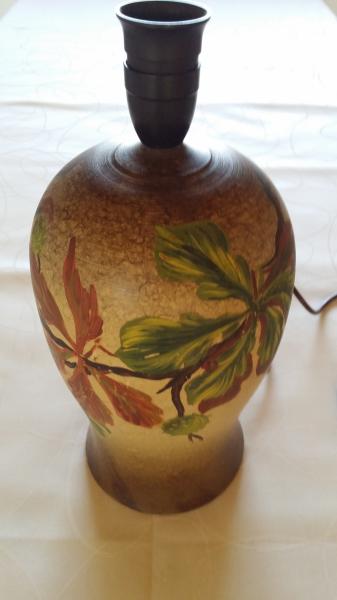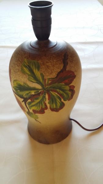 Keramik Bordlampe Intakt. H. 28 cm. Med den originale Bakelit fatning, ledningen er skiftet, lampen virker. Er håndlavet er sign. Motiv : Kastanjer.