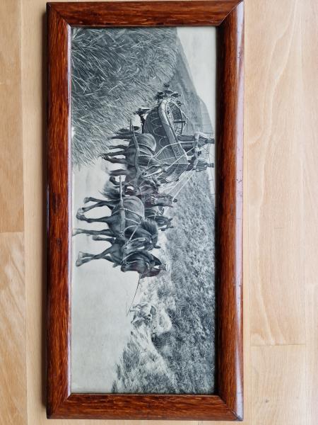 Mahogniramme med billede Hestetrukket skib med ridende hjælpere efter. B.. Læs mere.