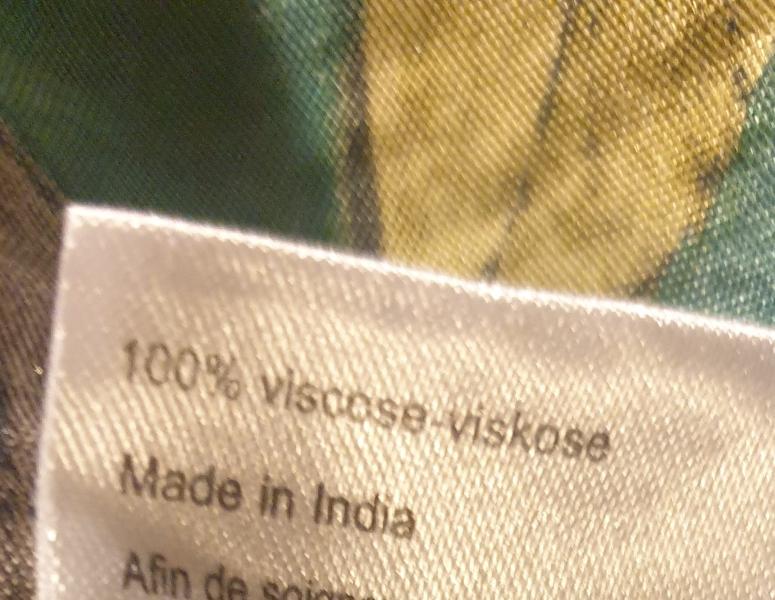 I fine farver: petrol-grøn med blomster i sort, hvid og grå, og lidt lys lime.