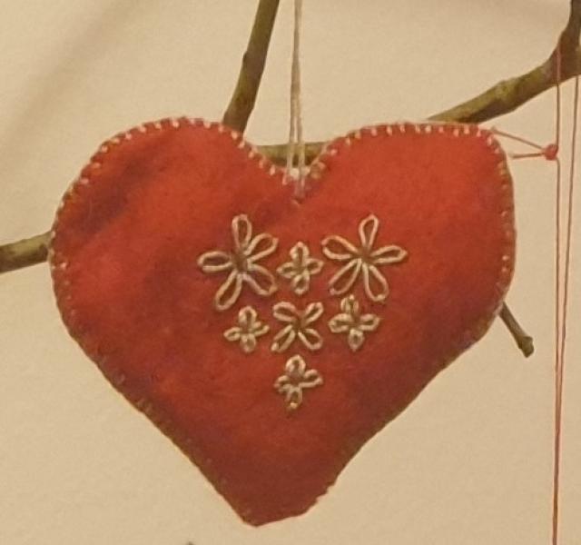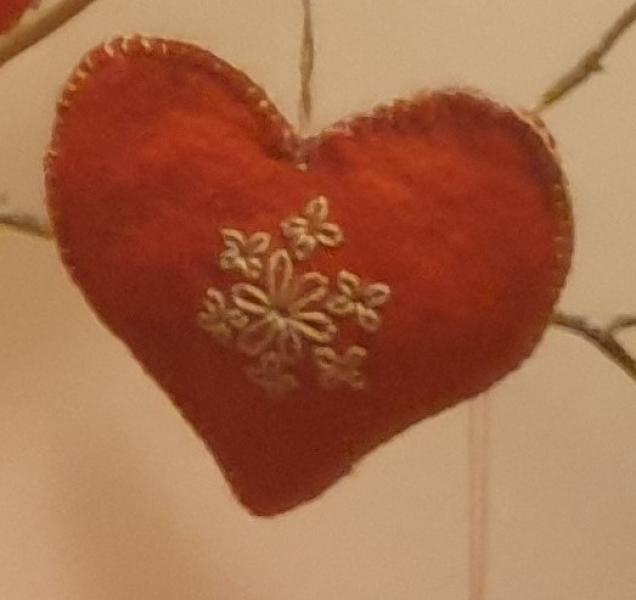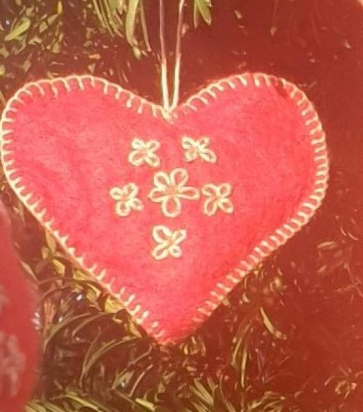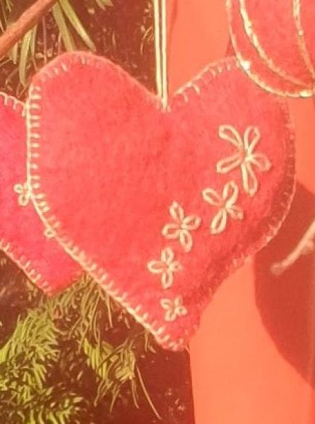 Julepynt fra 1930-40´erne. Til ophæng: 10 røde filthjerter og 3. Læs mere.