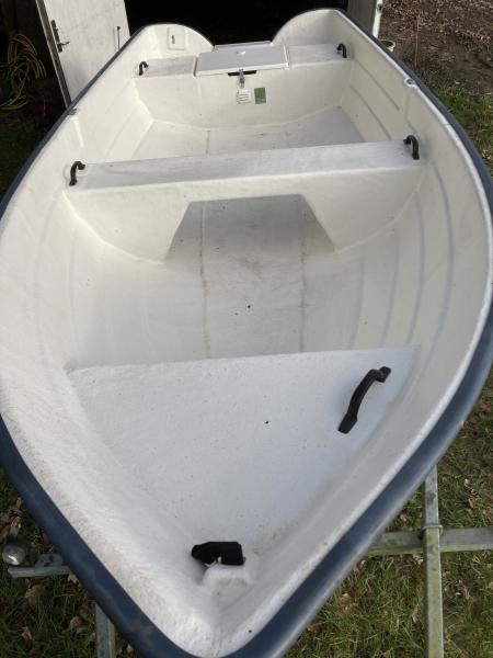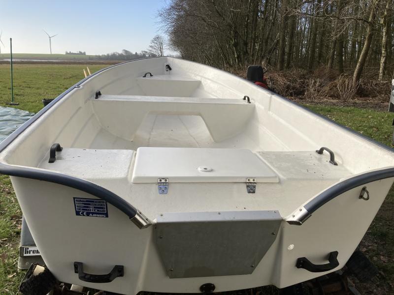 Rigtig fin jolle og motor med åre og anker det er næsten ikke brugt