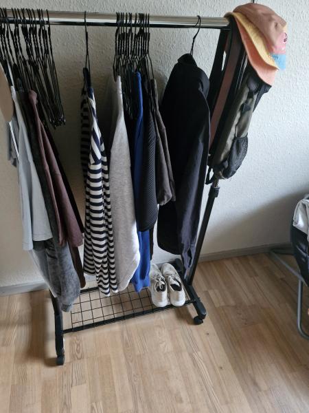 Rigtig fin og rummelig tøjstativ fra Jysk på hjul. Plads. Læs mere.